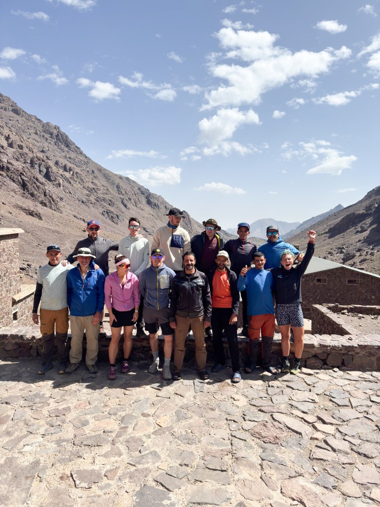 An early start on the following day marked the toughest challenge so far—a high-altitude trek over the Tizi Aguelzim pass. Along the way, we paused at a picturesque waterfall before tackling the steep zigzags to the top. With everyone in great form, we added the Aguelzim summit to our route—our second peak in as many days. By midday, we reached the refuge for lunch, where our support team once again delivered an incredible meal as we rested in preparation for summit day.