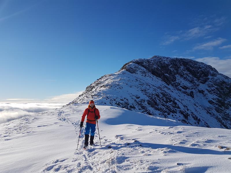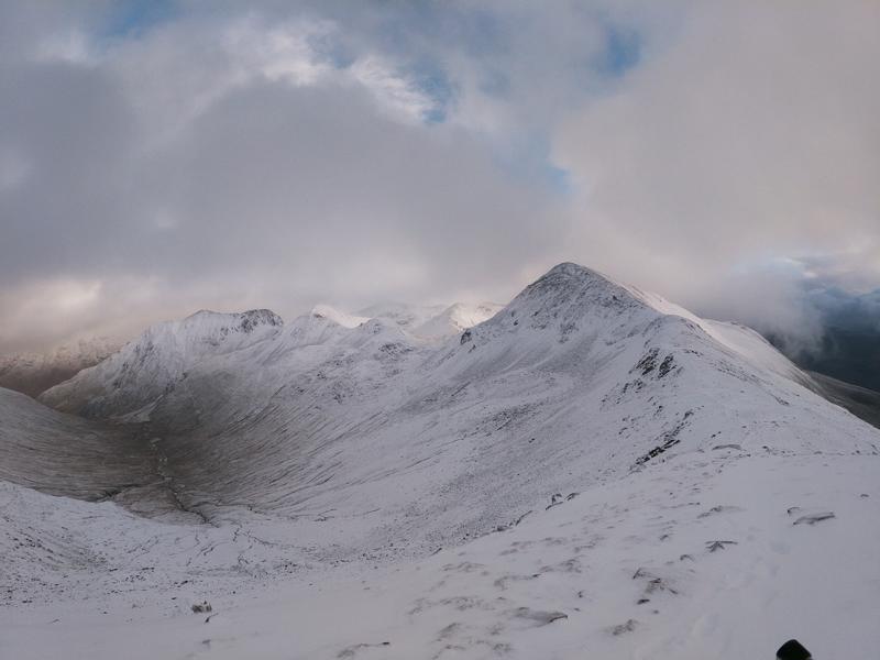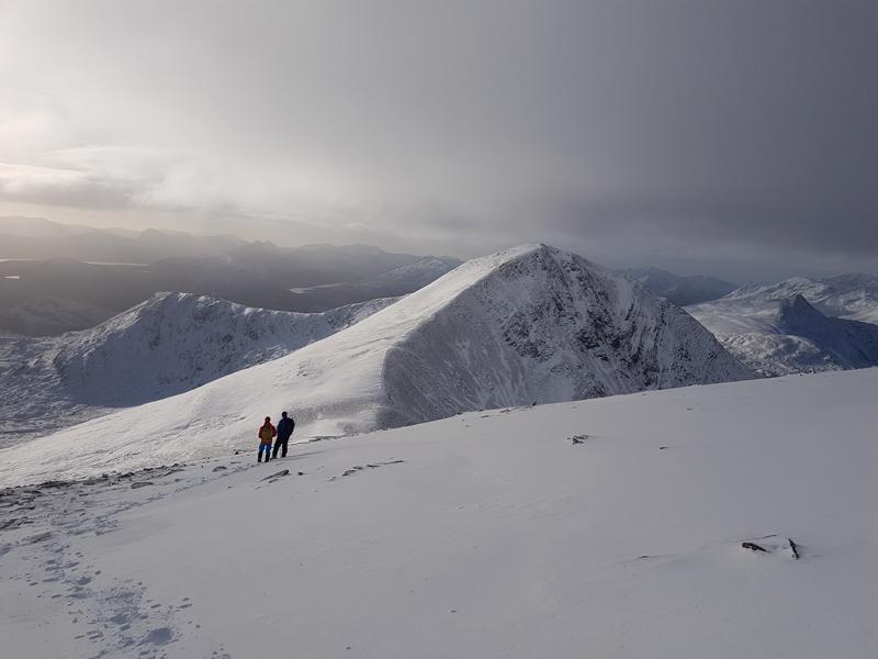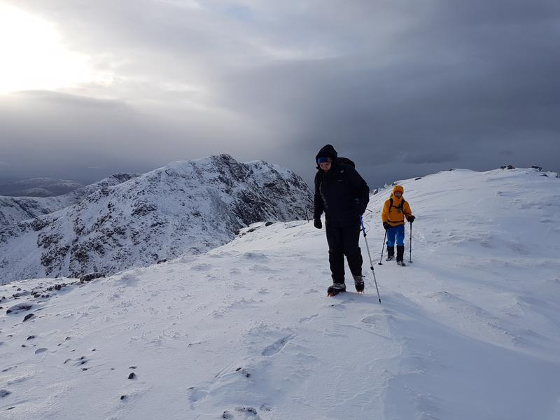 We climbed up and over Am Bodach still feeling fresh and the deep windblown snow on the ridges gave us a good solid footing which helped keep us on time.