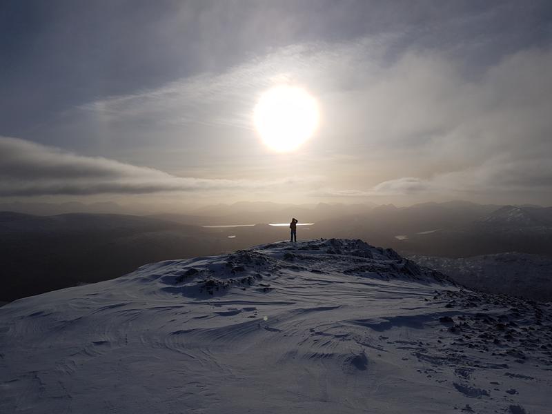 On the summit of Mheadhouin we met a group of local “ramblers” who described themselves as an extremist off shoot who spend most of their time climbing mountains in all conditions. It was great to be able to enjoy the views and share some stories before heading back down to find the car.