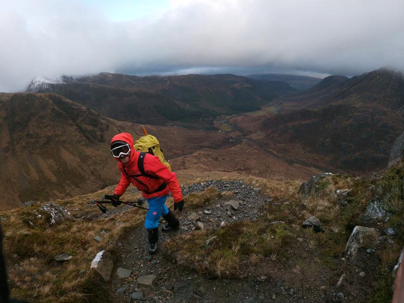 The crux of the first section is the Devils ridge and you need to be able to move quickly over exposed pinnacles and rock steps to ensure you don’t loose too much time. We found the ridge pretty straight forward but needed to keep it together as some of the gusts would stop you dead and could risk you blowing you off into oblivion. We took care but also did not hang around.
