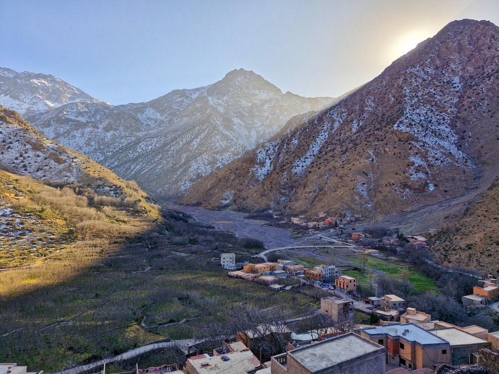 The proper start of the trek began in Imlil after our guests arrived at our Riad in Marrakech the day before. We enjoyed coffee at a friend’s hotel before wandering the village to stretch our legs. After picking up snacks for the trek, we walked along a mountain track with sweeping views of the valley before arriving at our Riad in Armed Village, our base for the night.